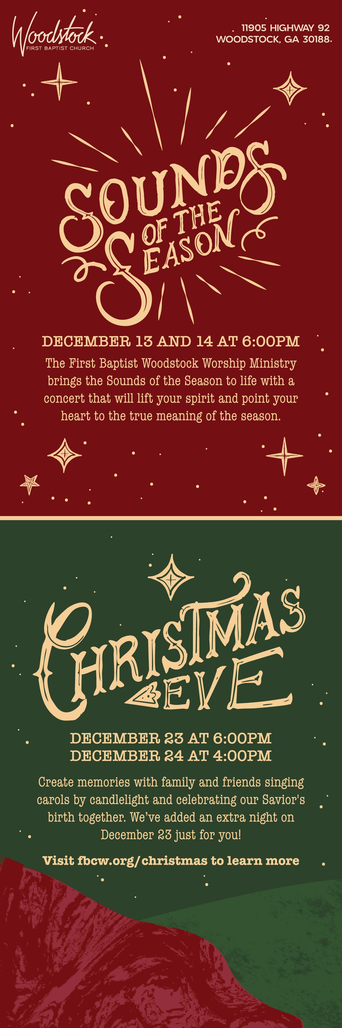 See what’s happening at First Baptist Woodstock over the holiday season!